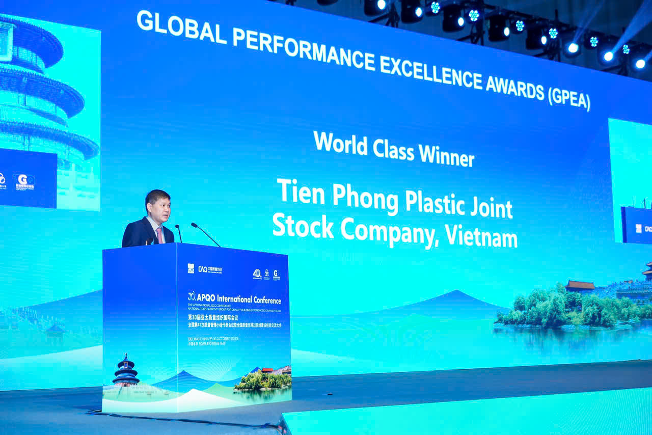 Trong bối cảnh tốc độ biến đổi khí hậu và đô thị hóa ngày càng tăng nhanh, “Xanh” không còn là sự lựa chọn, mà dần trở thành yếu tố quan trọng đối với các dự án xây dựng và bất động sản hiện đại vì các chủ đầu tư, nhà thầu và người tiêu dùng đều hướng tới vật liệu an toàn, bền vững, thân thiện với môi trường. Chính vì vậy, Giải thưởng Chất lượng quốc tế Châu Á – Thái Bình Dương (GPEA) được xem là một trong những giải thưởng danh giá nhất thế giới về chất lượng và quản trị doanh nghiệp. Và đây cũng là giải thưởng chính thức duy nhất được công nhận quốc tế trong đánh giá chất lượng và hiệu suất hoạt động sản xuất kinh doanh của doanh nghiệp khi hội tụ đầy đủ các yếu tố: đổi mới, hiệu quả quản lý, chất lượng sản phẩm vượt trội cùng cam kết phát triển bền vững. Mặt khác, trong suốt 25 năm Giải thưởng Chất lượng Châu Á – Thái Bình Dương được triển khai, Nhựa Tiền Phong đã là một trong hai doanh nghiệp duy nhất của Việt Nam vinh dự 2 lần nhận giải GPEA, đồng thời 7 lần đạt Giải thưởng Chất lượng Quốc gia, trong đó 3 lần đạt giải Vàng (2011, 2019 - 2020, 2023). Ngày 16/10/2025, Nhựa Tiền Phong đã trở thành doanh nghiệp nhựa xây dựng duy nhất tại Việt Nam đạt hạng mục World Class (cấp độ cao nhất) tại Lễ trao Giải thưởng Chất lượng Quốc tế Châu Á – Thái Bình Dương (GPEA 2025) được tổ chức tại Trung tâm Hội nghị Quốc tế Bắc Kinh (Trung Quốc). Điều này đã thể hiện được vị thế tiên phong của Nhựa Tiền Phong, không chỉ vững vàng trên thị trường nội địa, mà còn đủ tầm vóc để vươn ra toàn cầu, hội nhập sâu rộng vào chuỗi giá trị quốc tế.
