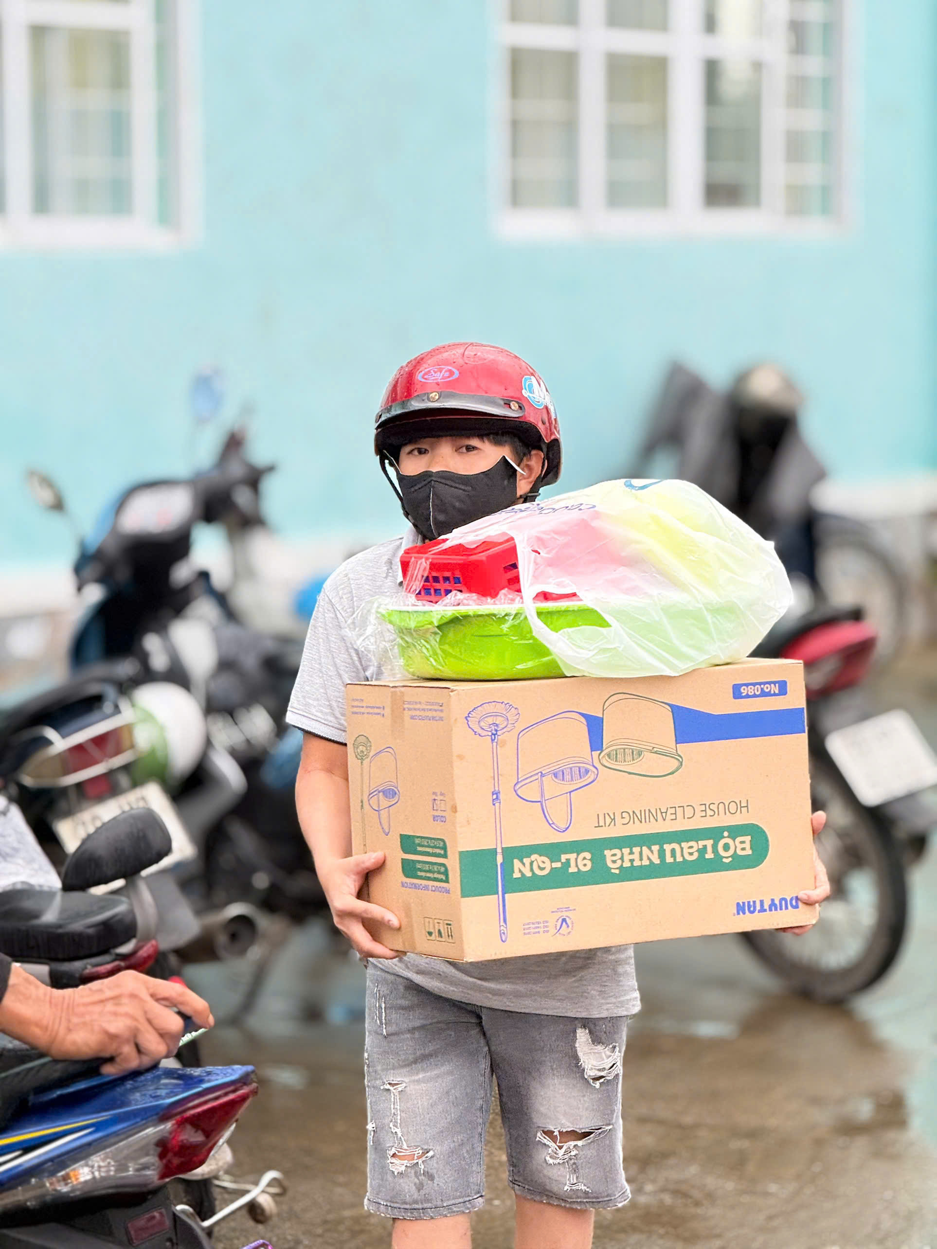 Các phần quà được trao tận tay người dân gồm bộ lau nhà, thùng đá giữ nhiệt, hộp đựng thực phẩm và các vật dụng sinh hoạt gia đình, đáp ứng nhu cầu thiết yếu trong sinh hoạt hằng ngày và hỗ trợ hiệu quả cho quá trình ổn định cuộc sống tại địa phương.