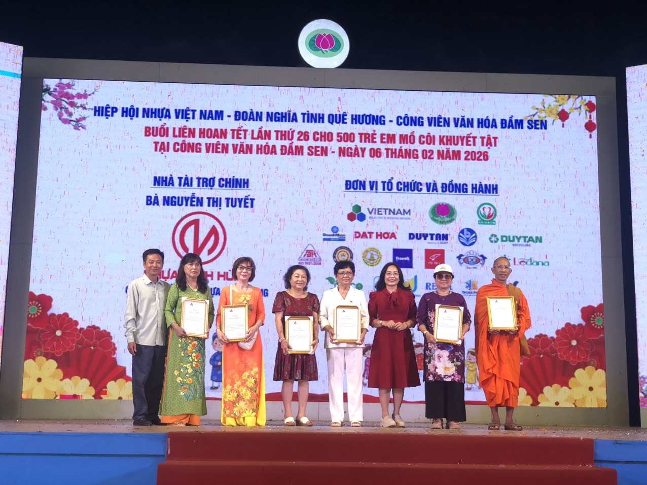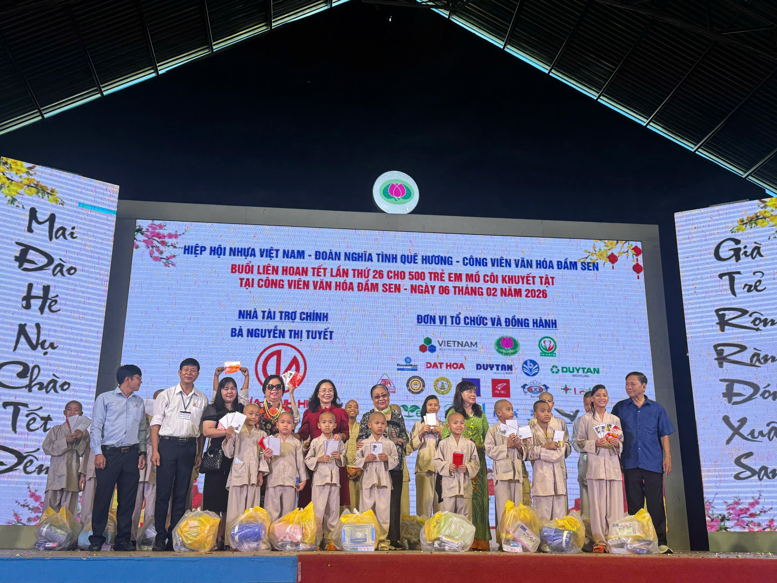 Sáng Thứ Sáu, ngày 06/02/2026, tại khu vực Ốc đảo – Công viên Văn hóa Đầm Sen (TP. Hồ Chí Minh), Hiệp hội Nhựa Việt Nam (VPA) phối hợp cùng Đoàn Nghĩa Tình Quê Hương và Công viên Văn hóa Đầm Sen tổ chức Buổi Liên hoan Tết lần thứ 26 dành cho 500 trẻ em mồ côi, khuyết tật đang được nuôi dưỡng tại các trung tâm mồ côi, nhà mở, mái ấm trên địa bàn thành phố.