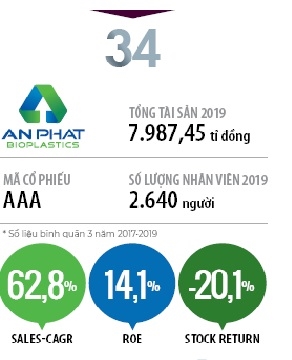 Trong bối cảnh nền kinh tế thế giới có nhiều biến động và ngành nhựa Việt Nam tăng trưởng chậm, Nhựa An Phát Xanh vẫn duy trì mức tăng trưởng ấn tượng với 16% doanh thu thuần và 131% lợi nhuận sau thuế năm 2019.
