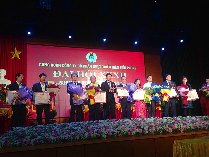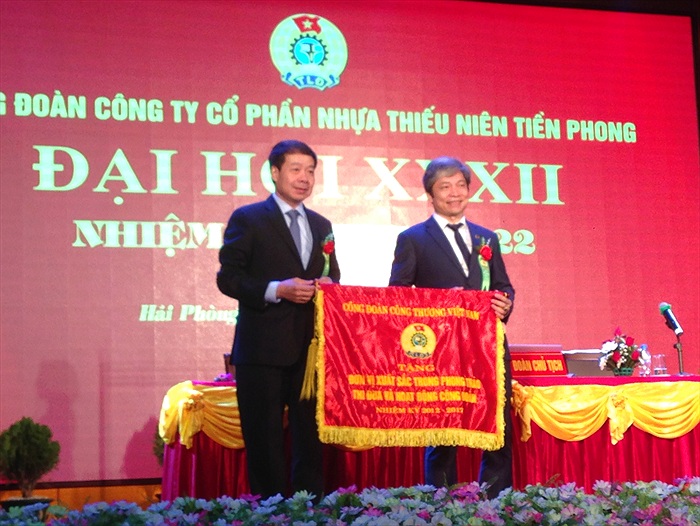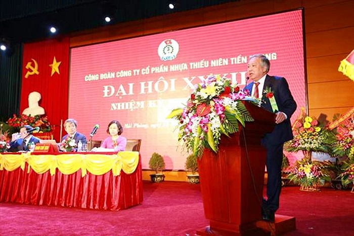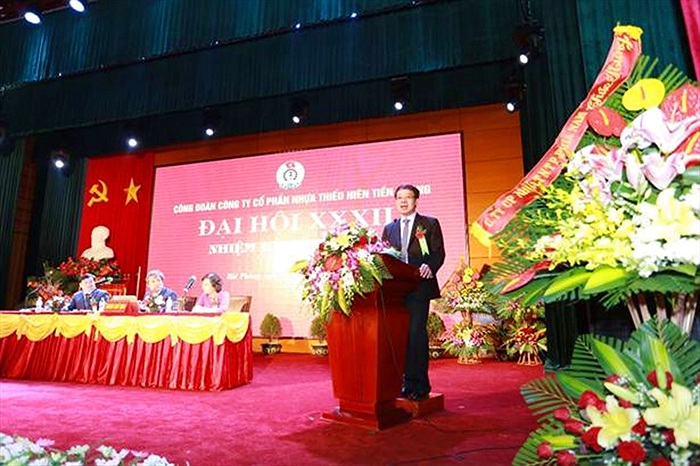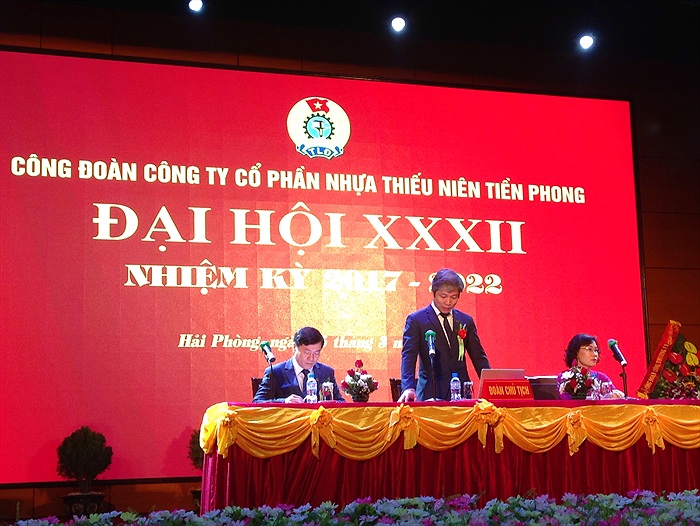 Dự Đại hội còn có toàn thể ban lãnh đạo Cty, Chủ tịch HĐQT, Tổng GĐ, các Phó TGĐ, Ủy viên HĐQT - thể hiện sự quan tâm của lãnh đạo Cty đối với tổ chức CĐ và người lao động. Mặc dù chịu ảnh hưởng nhiều của tình hình kinh tế thế giới và sự cạnh tranh giữa các đơn vị cùng sản xuất ống nhựa, nhưng năm 2016, Công ty CP Nhựa Thiếu Niên Tiền Phong vẫn duy trì ổn định sản xuất kinh doanh, xứng đáng là cánh chim đầu đàn của ngành Nhựa Việt Nam. Doanh thu của Cty đạt 4.360 tỷ đồng, lợi nhuận đạt 421 tỷ đồng. Thu nhập bình quân của người lao động trong Công ty đạt 8,5 triệu đồng/người/tháng. Đoàn Chủ tịch Đại hội Chia sẻ về kết quả đạt được, Chủ tịch Công đoàn Công ty nhiệm kỳ XXXI Trần Đỗ Khoa cho biết: Cùng với những định hướng, chỉ đạo trong sản xuất của Công ty, Công đoàn Công ty đã có nhiều hoạt động thiết thực, ý nghĩa cùng với chính quyền đảm bảo ổn định sản xuất. Bên cạnh những hoạt động nhằm chăm lo đời sống, đảm bảo quyền lợi của người lao động, Công đoàn đã tập trung tham gia quản lý, đẩy mạnh công tác tuyên truyền giáo dục nâng cao nhận thức chính trị, phối hợp thi đua, góp phần vào việc hoàn thành các chỉ tiêu kinh tế của Công ty. Những điều này cho thấy, tổ chức công đoàn của Công ty luôn là người bạn đồng hành của CNVCLĐ, là cầu nối giữa người lao động với lãnh đạo doanh nghiệp, để người sử dụng lao động và người lao động luôn có tiếng nói chung, vì một mục đích cao nhất là doanh nghiệp phát triển bền vững và người lao động có việc làm ổn định, thu nhập ngày càng cao. Công đoàn Cty hiện quản lý 10 Công đoàn bộ phận, 08 tổ công đoàn trực thuộc và 1.141 đoàn viên công đoàn. Hoạt động công đoàn luôn nhận được sự quan tâm từ chính quyền. Ban Giám đốc Công ty đặc biệt chú trọng việc chăm lo đời sống vật chất cũng như tinh thần của người lao động, nên đã tạo mọi điều kiện thuận lợi để Công đoàn hoạt động. Trong nhiệm kỳ vừa qua, việc làm của người lao động luôn ổn định, 100% CNVCLĐ được đóng BHXH, BHYT. Công đoàn đã phối hợp, giám sát thực hiện chế độ bồi dưỡng ca 3, độc hại, nước uống, cháo chống nóng mùa hè; duy trì bếp ăn tập thể đảm bảo an toàn vệ sinh thực phẩm. Hàng năm, Công đoàn Cty đều đề xuất với chuyên môn tổ chức cho đoàn viên đi tham quan, du lịch, nghỉ dưỡng 2 lần/năm; nâng cao đời sống tinh thần cho người lao động thông qua các hoạt động văn hóa nghệ thuật, thể dục thể thao ít nhất 1 năm/lần; công tác khám, chữa bệnh định kỳ được thực hiện theo TƯLĐTT. Nhiệm kỳ vừa qua, Công đoàn đã phối hợp với chuyên môn tổ chức thi nâng cao, nâng bậc cho công nhân trực tiếp sản xuất, xét duyệt nâng lương cho cán bộ, nhân viên khối gián tiếp theo quy định. Hàng năm. hàng trăm CNVCLĐ được cử đi đào tạo, tập huấn, nâng cao nghiệp, tay nghề, học tập các mô hingh quản lý, sản xuất kinh doanh tại các nước tiên tiến, nhằm ứng dụng vào thực tiễn sản xuất, kinh doanh của Công ty. Ban Chấp hành Công đoàn Công ty khóa XXXI đã xây dựng quy chế làm việc của Ban Chấp hành, quy chế quan hệ phối hợp công tác giữa Ban Chấp hành Công đoàn Công ty với Hội đồng quản trị, Tổng Giám đốc, xây dựng quy chế dân chủ ở doanh nghiệp, thành lập Hội đồng hòa giải và giải quyết những vướng mắc ở một số đơn vị về tiền lương, tiền thưởng, công tác quản lý vật tư, nguyên liệu, tài sản... Do đó, 5 năm qua, Công ty không xảy ra trường hợp tranh chấp lao động nào. Phong trào lao động giỏi, phát huy sáng kiến cải tiến kỹ thuật được Công đoàn Công ty phát động hàng năm đã duy trì và phát triển mạnh mẽ. 5 năm qua, Công ty đã có 892 sáng kiến; tổng số tiền chi khen thưởng đạt gần 3,6 tỷ đồng. Năm 2015, Công đoàn Công ty đã xây dựng Thư viện Nhựa Tiền Phong; đồng thời tổ chức liên kết với Thư viện Thành phố để cập nhật kịp thời các loại sách, báo, tài liệu, phục vụ nhu cầu học tập, nghiên cứu nâng cao hiểu biết, kỹ năng nghề nghiệp và nhu cầu giải trí của CNVCLĐ tại Công ty. Ông Trần Bá Phúc - Bí thư Đảng ủy - Chủ tịch Hội đồng QT Cty phát biểu tại Hội nghị. Tại Đại hội, 3 ý kiến tham luận đã tập trung vào những vấn đề mang tính mấu chốt của doanh nghiệp và tổ chức công đoàn trong thời điểm hiện nay. Đặc biệt, việc làm thế nào để đẩy mạnh phong trào thi đua lao động giỏi, lao động sáng tạo có ý nghĩa sống còn với việc duy trì và tạo ra những sản phẩm chất lượng, đảm bảo tính cạnh tranh cả trong nước và trên thế giới. Từ phong trào này, sẽ xuất hiện nhiều ý tưởng, sáng kiến mang lại những cải tiến kịp thời đối với dây chuyền sản xuất cũng như các khâu quản lý, điều hành khác trong Cty. Đánh giá cao hiệu quả mà Công đoàn Cty mang lại trong thời gian qua, ông Trần Bá Phúc - Bí thư Đảng 