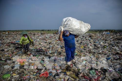 Rác thải nhựa tại một bãi rác ở Tây Java, Indonesia. Ảnh: AFP/TTXVN